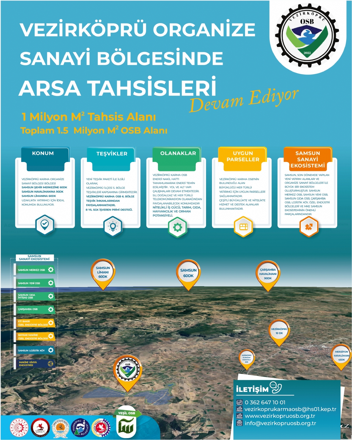 ✅️Kuzeyin Üretim Merkezi Samsun’umuzda yatırım ve istihdamın yeni rotalarından Samsun Vezirköprü Karma Organize Sanayi Bölgesi’nde yatırım yapmak isteyen sanayicilerimiz Arsa tahsis başvurularını 22.02.2026 tarihine kadar http://meydip.sanayi.gov.tr adresinden yapabilecektir.